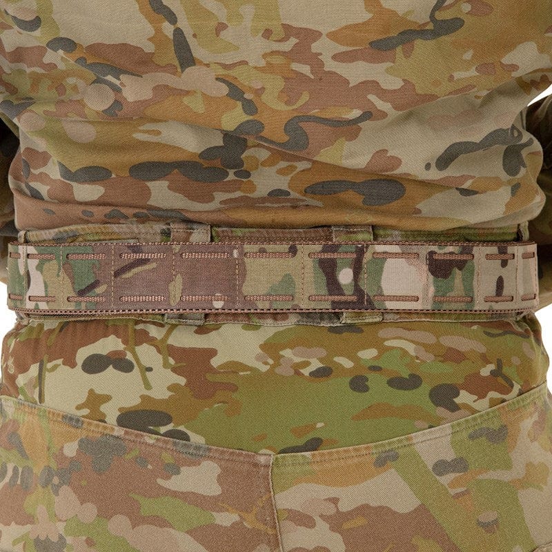 The external face of the belt features a laser-cut MOLLE system laminated for reinforced durability. This advanced system permits secure attachment and stabilization of mission-critical pouches, enabling swift access to your gear when seconds count.